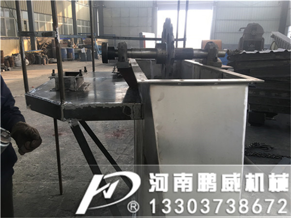 NE板鏈式斗式提升機由運行部件、驅動裝置、上部裝置、中部機殼、下部裝置組成。運行部件---由料斗和專用板式鏈條組成,NE30以及下采用單排鏈,NE50--NE800采用雙排鏈。驅動裝置---采用多種驅動組合驅動,(依用戶實際需要而定).驅動平臺上裝有檢修架和欄桿。驅動制裝置分左和右裝兩種。上部裝置---安裝有軌道(雙排鏈)、逆止器、卸料口裝有防回料橡膠板。中間節---部分中間節裝有軌道(雙鏈),以防止鏈條工作中擺動。下部裝置---安裝有自動張緊裝置。